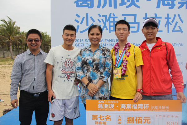 吳榮權(quán)參加海棠灣沙灘馬拉松取得第七名 并與三亞市副市長許振凌(中)合影
