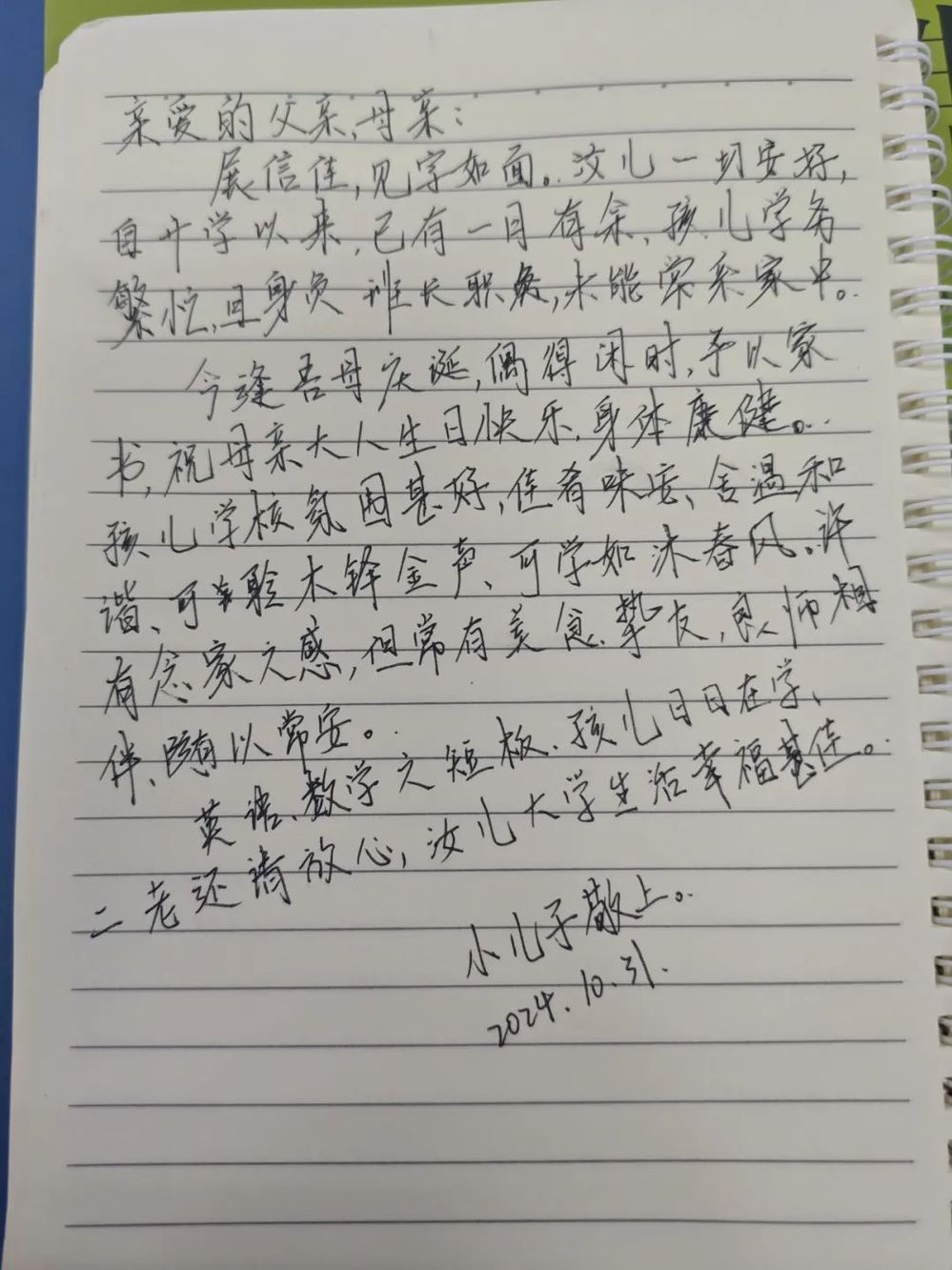 我在學校挺好的,每天都有認真聽課,按時完成作業(yè),慢慢地也開始泡上圖書館了……我喜歡這種自律且規(guī)律的學習生活,希望這樣努力的自己不辜負夢想,也不辜負你們的期望!