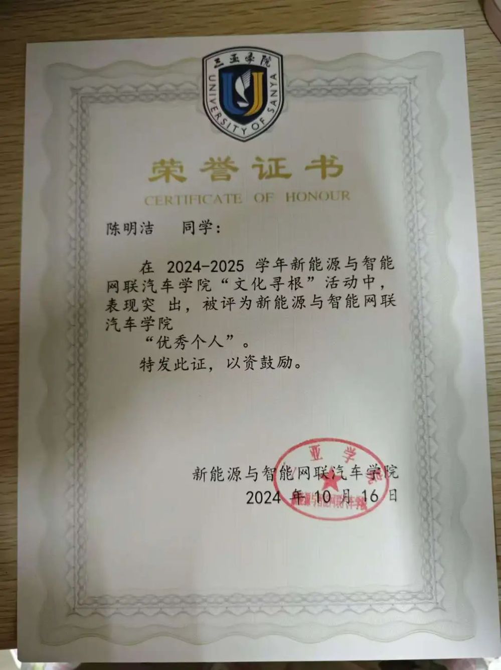 吾不善言辭,然吾愿雙親永保安康。你們給我的溫暖,給予我的支持,永遠是我前進道路上的永恒動力。如今,我想對你們說:我在三亞學院挺好的,放心吧!