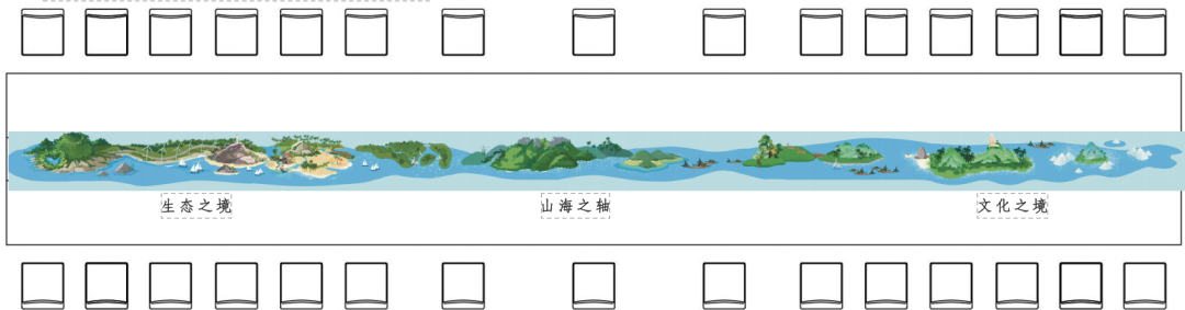 這一理念以海南獨(dú)特地域特色為藍(lán)本。設(shè)計(jì)中的 “軸”,具象為海南極具代表性的自然景觀 —— 以五指山最高峰為起點(diǎn),延伸至博鰲三江入??诘纳胶VS。五指山作為海南的標(biāo)志性山脈,是自然力量的象征;博鰲三江入??趧t是匯聚之地,不僅連接著陸地與海洋,更象征著海南在亞洲交流合作中的關(guān)鍵位置,是亞洲多元交流的縮影,凸顯博鰲在亞洲論壇中溝通各方、凝聚共識(shí)的突出地位。