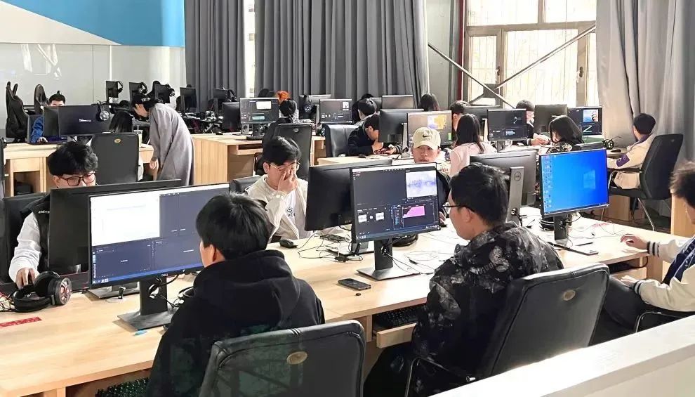 同學(xué)們在學(xué)校電競影視實(shí)訓(xùn)基地里進(jìn)行電競內(nèi)容創(chuàng)作與剪輯