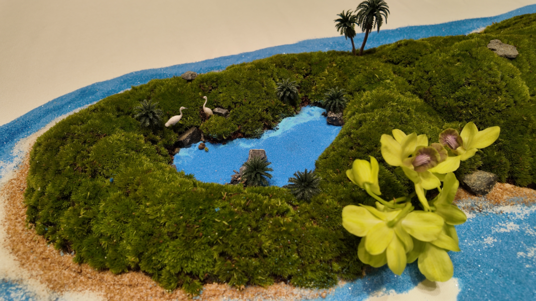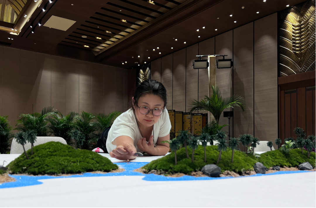 Throughout the project's implementation, the faculty-student team from University of Sanya fully embraced the philosophy of industry-education integration through the application of classroom knowledge to practical application. Students leveraged principles of aesthetics to orchestrate the overall layout and visual effects. Applying their professional expertise, the students meticulously selected indigenous plant specimens to authentically recreate Hainan's distinctive ecosystems, showcasing the island's unique geographical character. To achieve optimal visual impact, the team demonstrated extraordinary ingenuity in material selection, with each element bearing distinct Hainan cultural imprints.
