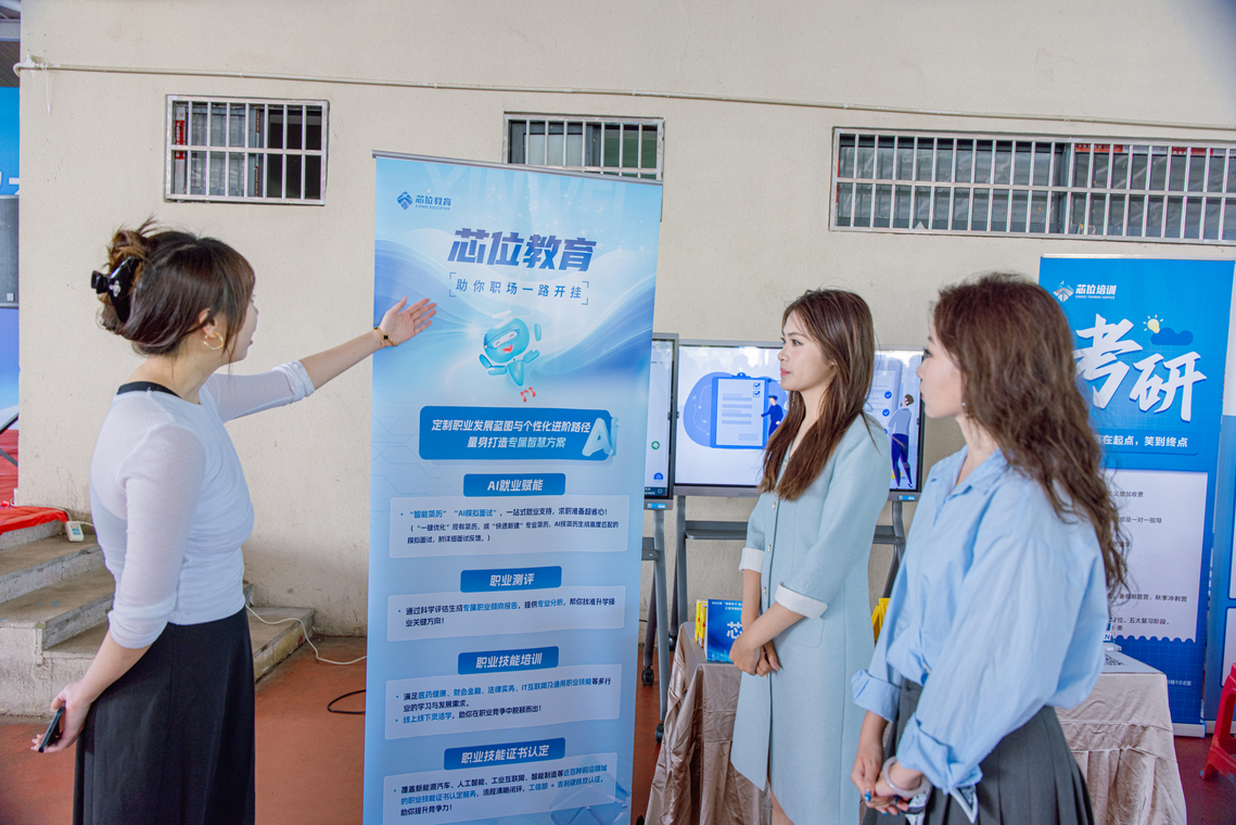 雙選會(huì)深度融合AI技術(shù),吉利教育集團(tuán)的芯位教育平臺(tái)通過(guò)“職業(yè)角色匹配度測(cè)試”,智能分析學(xué)生技能、傾向與崗位需求,結(jié)合行業(yè)趨勢(shì)生成個(gè)性化求職報(bào)告,精準(zhǔn)推薦適配崗位。雙選會(huì)現(xiàn)場(chǎng)設(shè)置AI就業(yè)交互機(jī),提供簡(jiǎn)歷診斷、面試指導(dǎo)、崗位推薦等一體化自助服務(wù);智能聯(lián)播機(jī)提供24小時(shí)崗位宣傳、政策宣講、數(shù)字人滾動(dòng)播報(bào)等功能,打造智慧求職新體驗(yàn)。