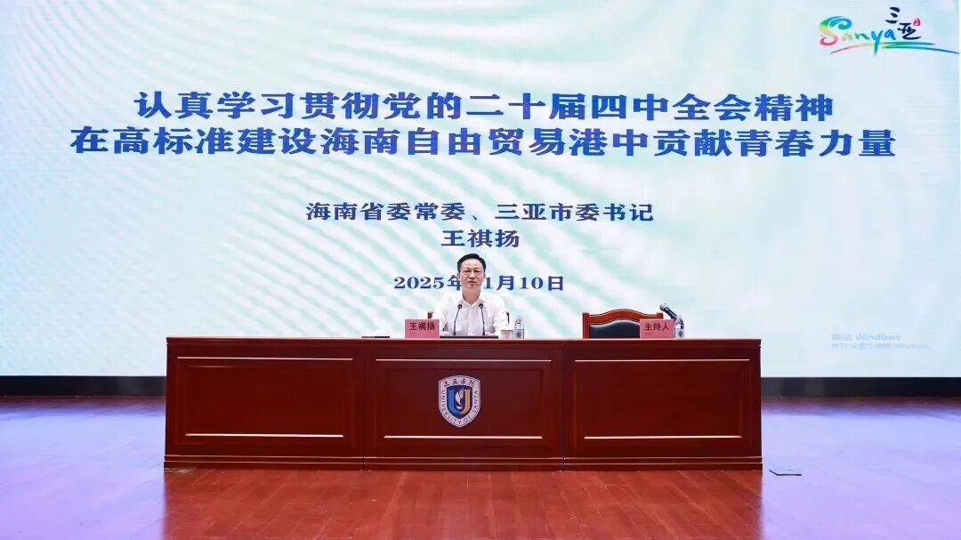 11月10日,省委常委、市委書記王祺揚以“認(rèn)真學(xué)習(xí)貫徹黨的二十屆四中全會精神,在高標(biāo)準(zhǔn)建設(shè)海南自由貿(mào)易港中貢獻(xiàn)青春力量”為題,在三亞學(xué)院宣講黨的二十屆四中全會精神并講授思政課。