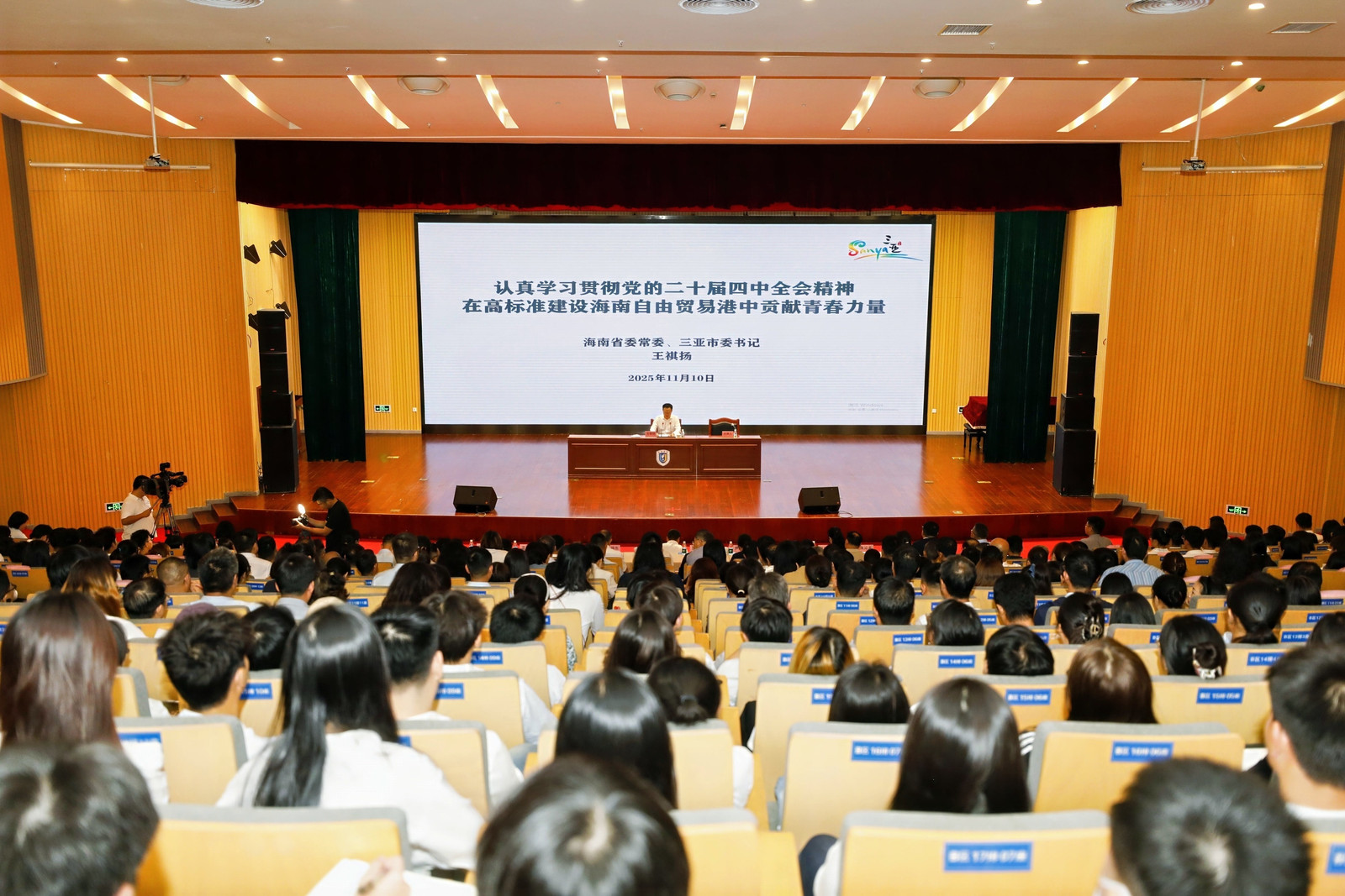 11月10日,省委常委、市委書(shū)記王祺揚(yáng)以“認(rèn)真學(xué)習(xí)貫徹黨的二十屆四中全會(huì)精神,在高標(biāo)準(zhǔn)建設(shè)海南自由貿(mào)易港中貢獻(xiàn)青春力量”為題,在三亞學(xué)院宣講黨的二十屆四中全會(huì)精神并講授思政課。三亞學(xué)院校長(zhǎng)沈建勇主持宣講會(huì)。