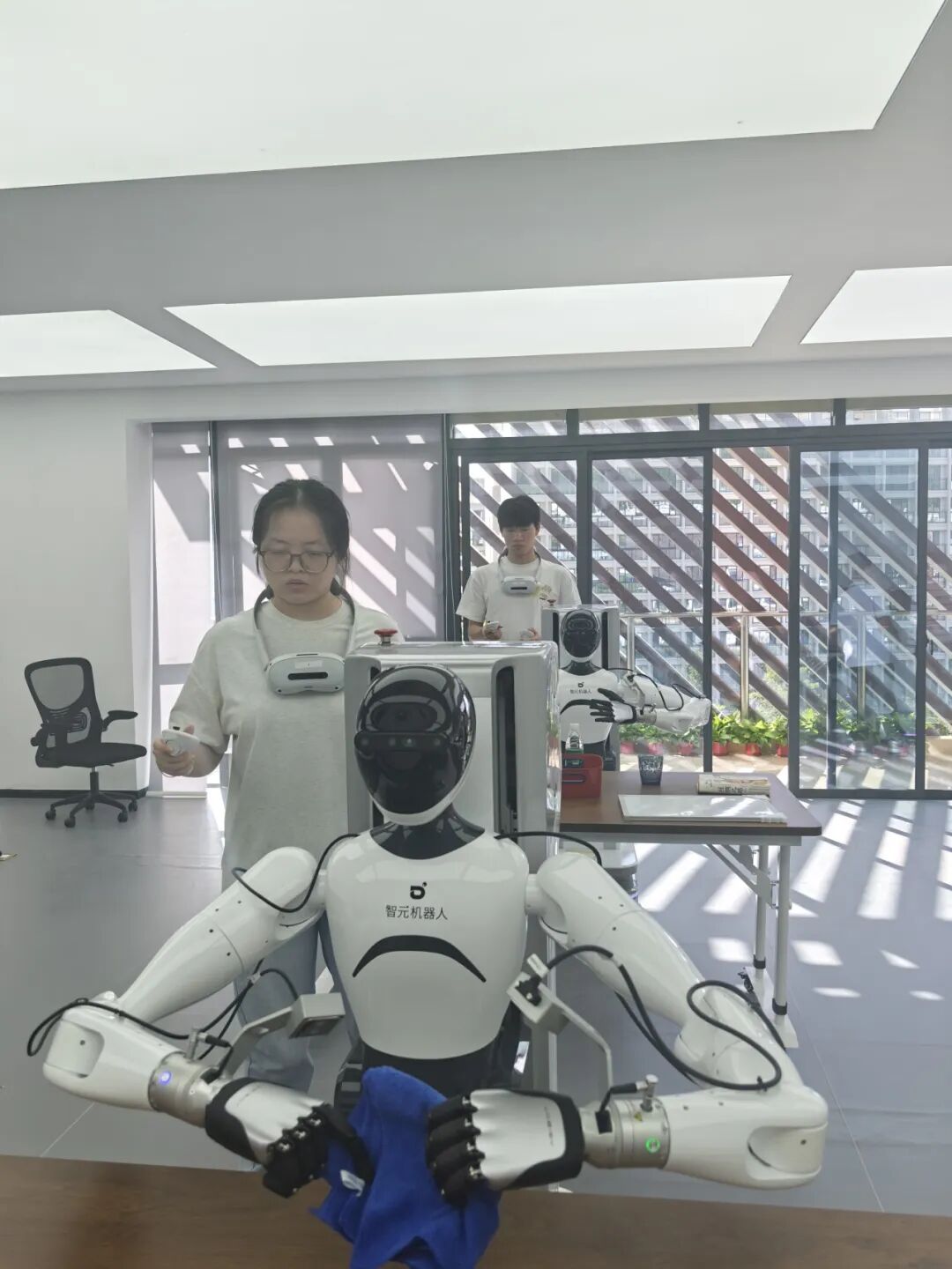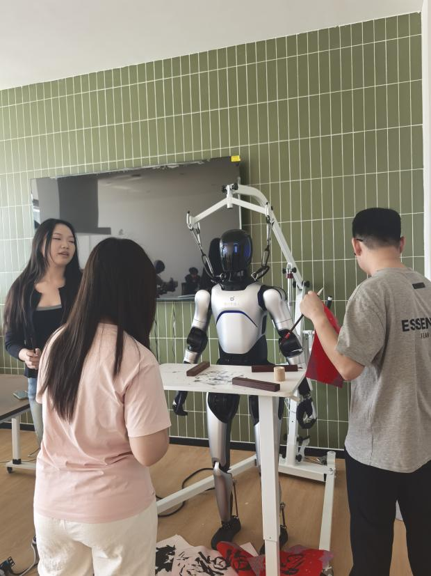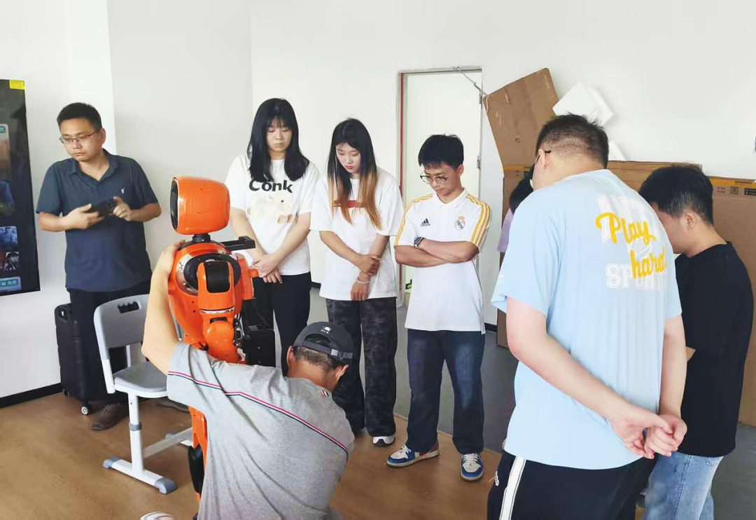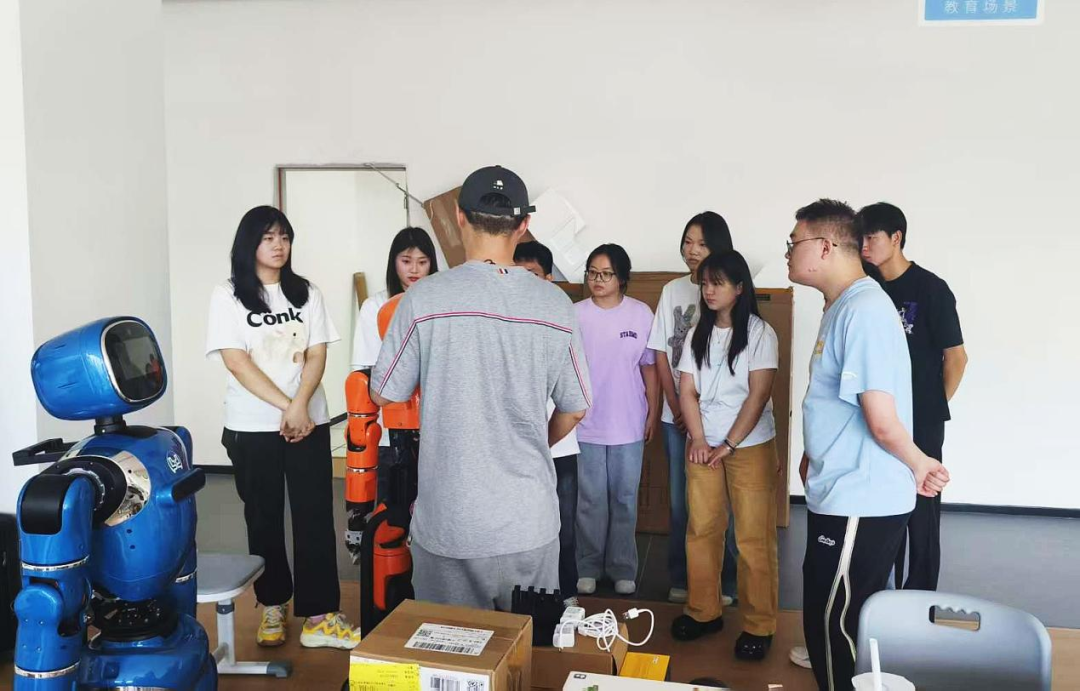 在長智公司的技術(shù)車間里,學(xué)生們面對的不再是教材上的習(xí)題,而是企業(yè)正在攻關(guān)的實際項目。他們分組協(xié)作,在工程師的帶領(lǐng)下,學(xué)習(xí)并操作具身智能機器人,嘗試將其應(yīng)用于文旅引導(dǎo)、康養(yǎng)輔助等具體場景的解決方案設(shè)計中。