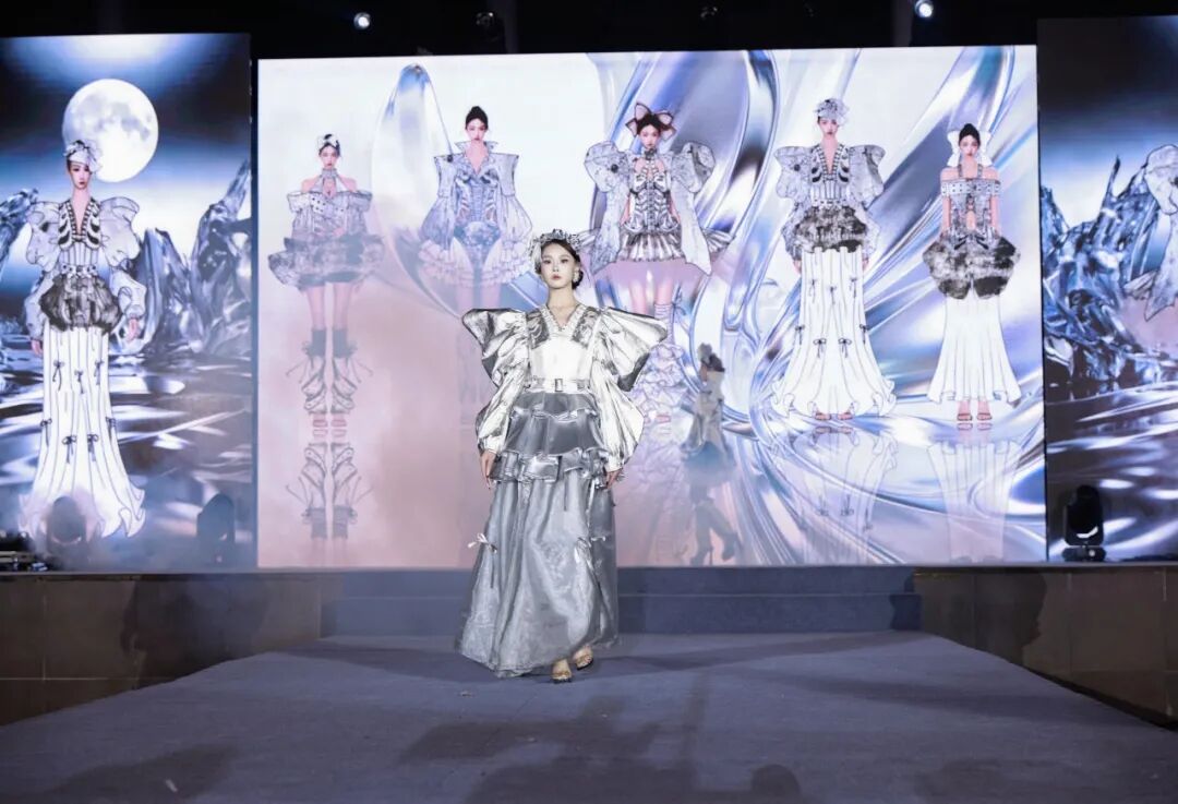本屆大賽以“產(chǎn)教芯程,智尚共生”為主題,呈現(xiàn)了一場(chǎng)融合科技、時(shí)尚與產(chǎn)業(yè)思考的青春創(chuàng)意盛宴。這不僅是一場(chǎng)學(xué)生作品的集中展示,更是一屆屆服裝學(xué)子用設(shè)計(jì)語(yǔ)言回應(yīng)時(shí)代、對(duì)話(huà)產(chǎn)業(yè)的青春答卷。在人工智能、新材料與可持續(xù)理念重塑時(shí)尚產(chǎn)業(yè)的今天,師生們以“芯位教育”為平臺(tái),以項(xiàng)目實(shí)踐為載體,交出了一份關(guān)于未來(lái)時(shí)尚的生動(dòng)答案。