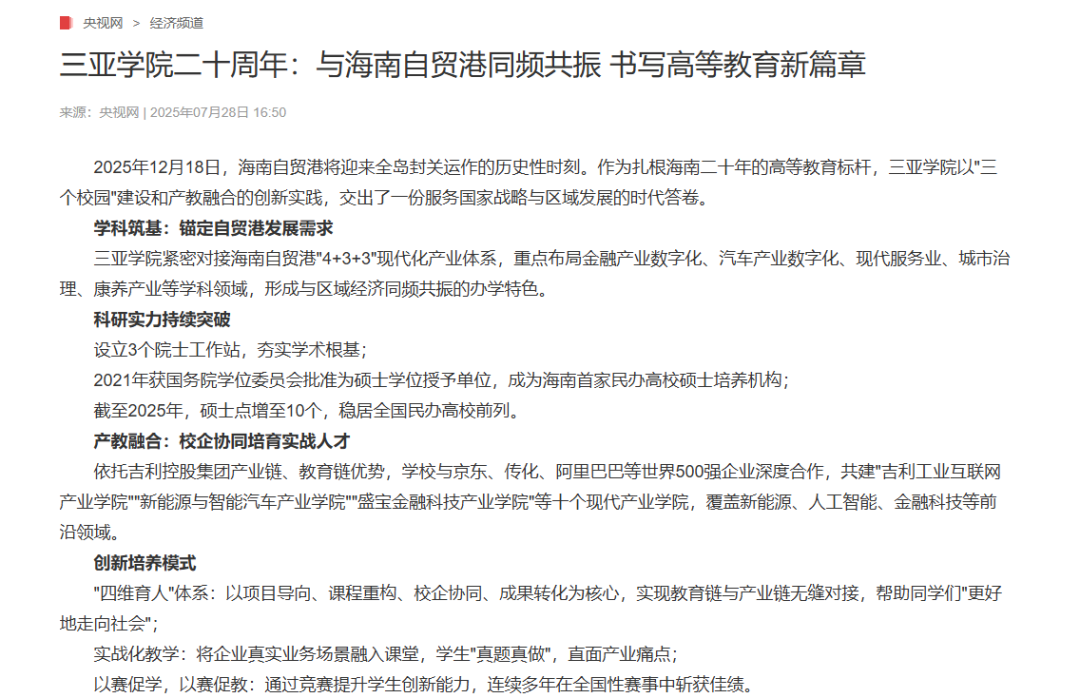 三亞學(xué)院的“2025版”動(dòng)態(tài)被媒體持續(xù)關(guān)注
