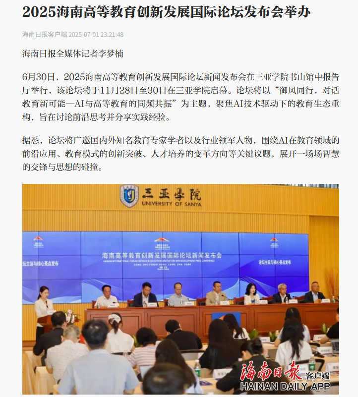 2025海南高等教育創(chuàng)新發(fā)展國際論壇發(fā)布會(huì)舉辦