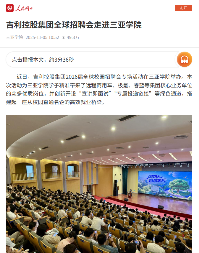 吉利控股集團(tuán)全球招聘會(huì)走進(jìn)三亞學(xué)院