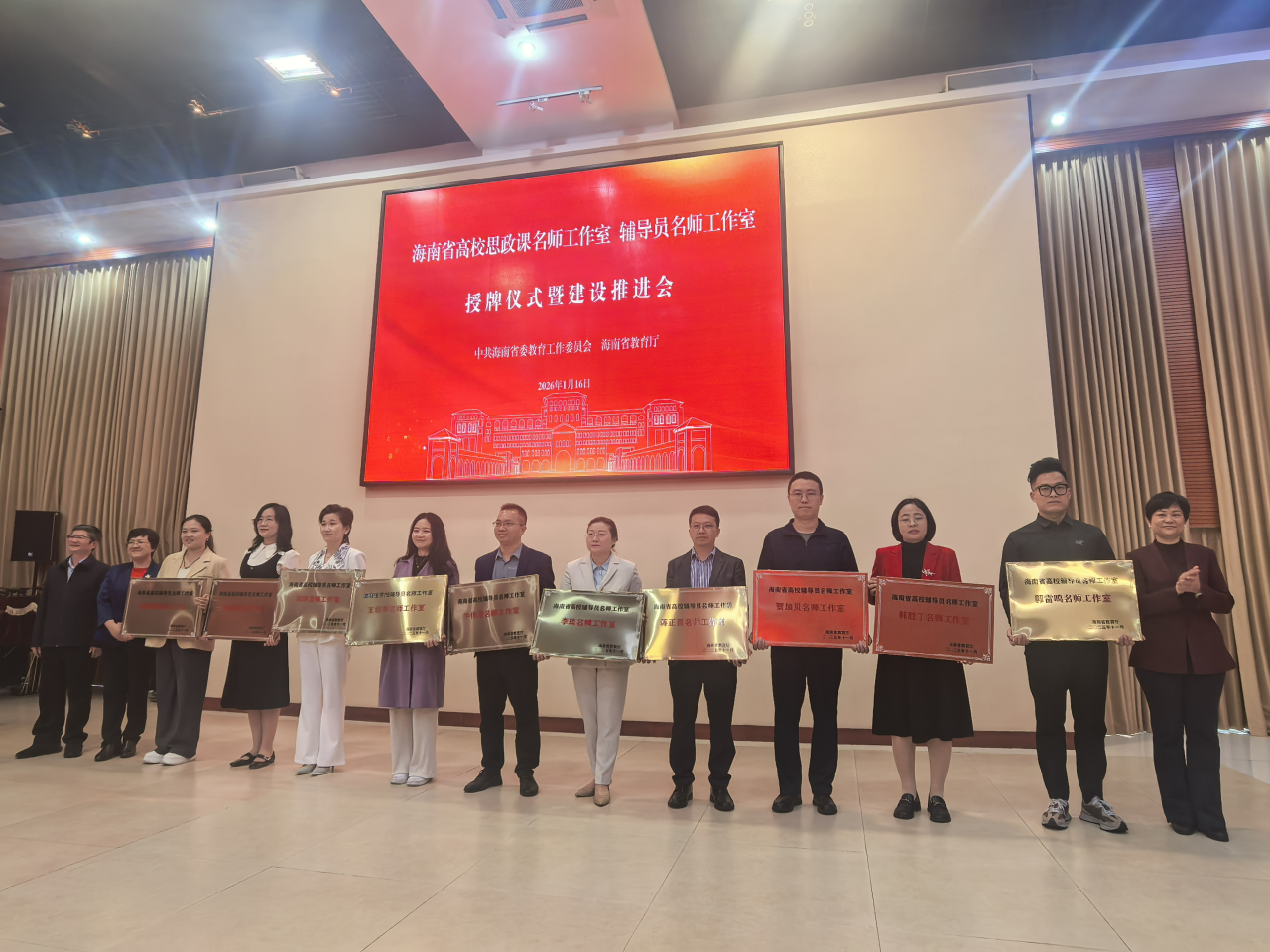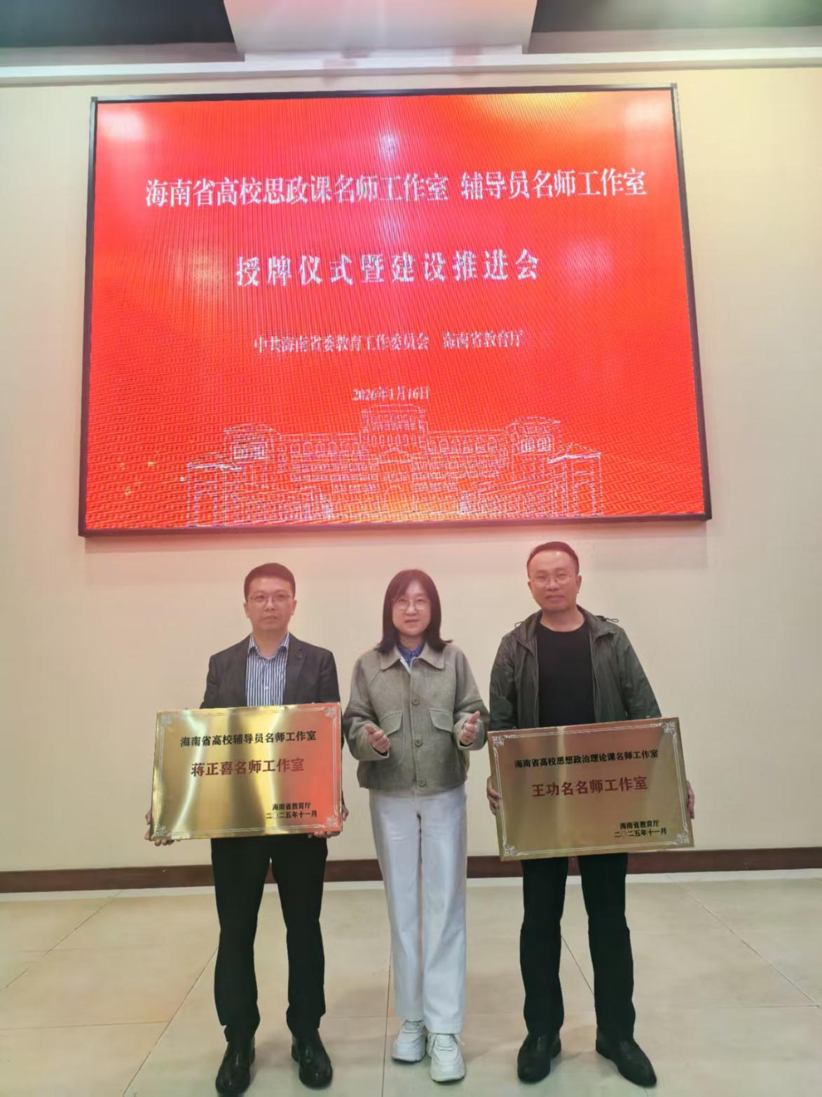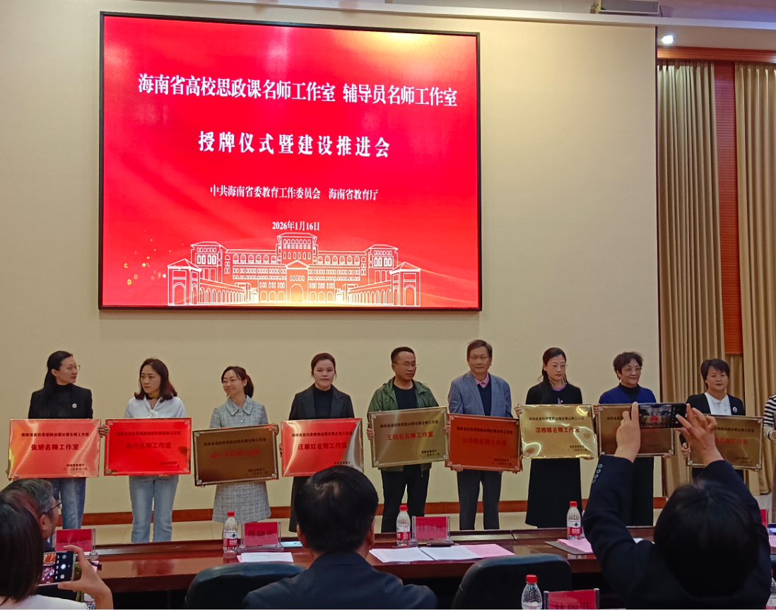 近期,海南省高校思政課名師工作室、輔導員名師工作室授牌儀式暨建設推進會在海口舉行。三亞學院馬克思主義學院院長王功名主持的“三亞學院思政訪談室”入選海南省高校思想政治理論課名師工作室;社會學院團委副書記蔣正喜主持的“AI-LOVE 心智引擎工作室”入選海南省高校輔導員名師工作室,兩個名師工作室獲省教育廳正式授牌。三亞學院副校長高一蘭代表學校出席儀式。