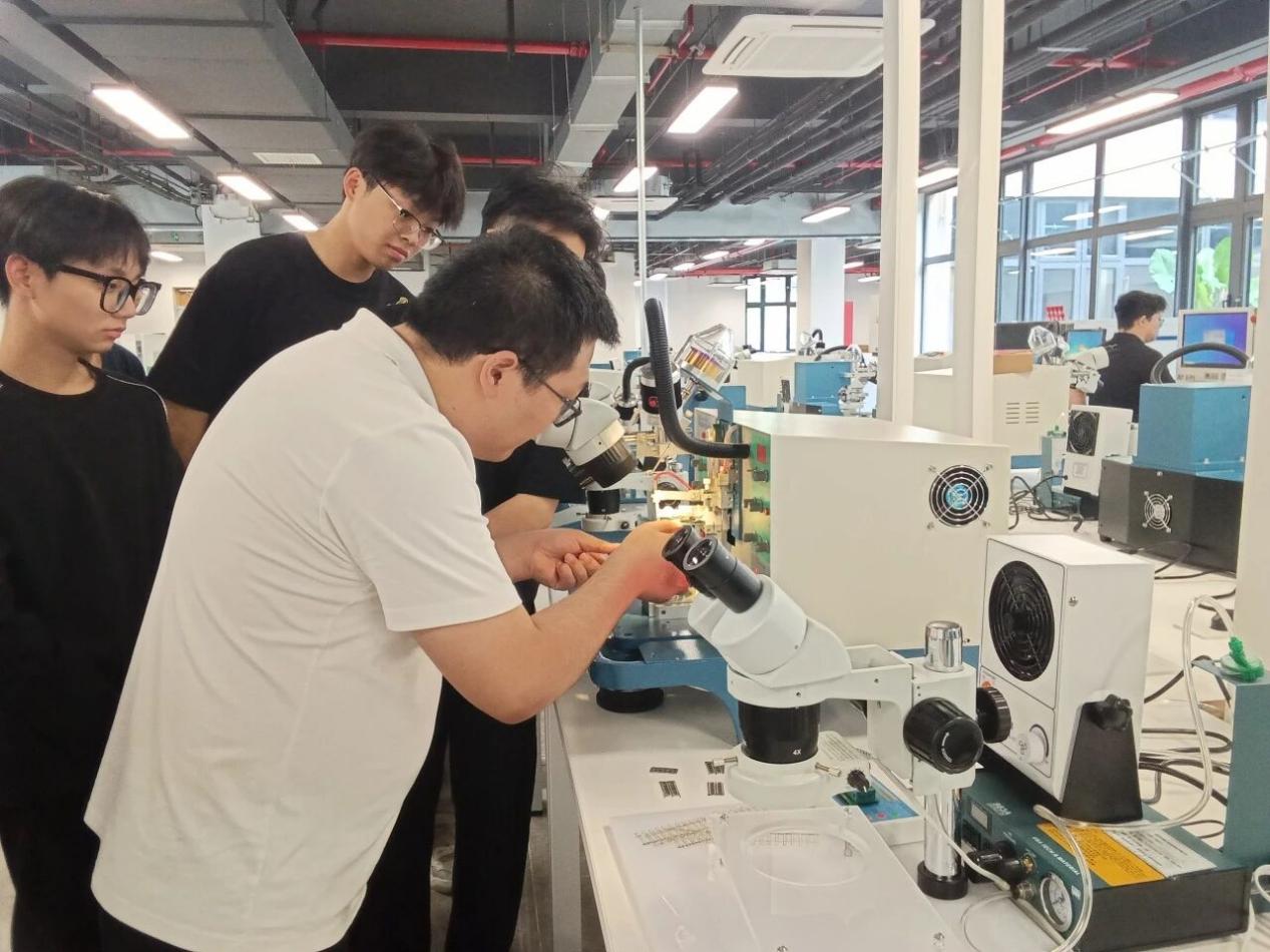 “以前覺得芯片封裝離自己很遠(yuǎn),現(xiàn)在我們可以親手完成從晶圓劃片到測(cè)試的全流程,真正理解了工藝背后的原理和質(zhì)量控制的意義?!币幻麉⑴c項(xiàng)目的學(xué)生感慨道?,F(xiàn)在,學(xué)生們親手劃片、鍵合、測(cè)試,把“黑箱”拆成了看得見、摸得著的工藝流程,但更不一樣的是上課方式,課程不再讓學(xué)生“按部就班”做驗(yàn)證實(shí)驗(yàn),而是直接把企業(yè)的真實(shí)項(xiàng)目搬進(jìn)課堂。學(xué)生以“產(chǎn)線工程師”“工藝技術(shù)員”的身份,分組接單、分工協(xié)作:有人優(yōu)化PCB設(shè)計(jì)、制定鋼網(wǎng)開孔方案,有人編寫貼片程序、調(diào)試爐溫曲線,最后一起完成車規(guī)級(jí)可靠性測(cè)試。在封裝實(shí)驗(yàn)室,從晶圓劃片到最終測(cè)試,每一步都得自己動(dòng)手、自己負(fù)責(zé)。