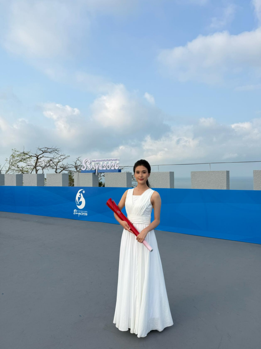 Being selected as a flame attendant was a pleasant surprise, as well as a precious honor and responsibility for her. "Flame attendant is not just a title, but a responsibility. I know this glory belongs not only to me but also to my alma mater, University of Sanya. I wish to dedicate my youth to this grand event and pass on the sacred flame with a glimmer of light."