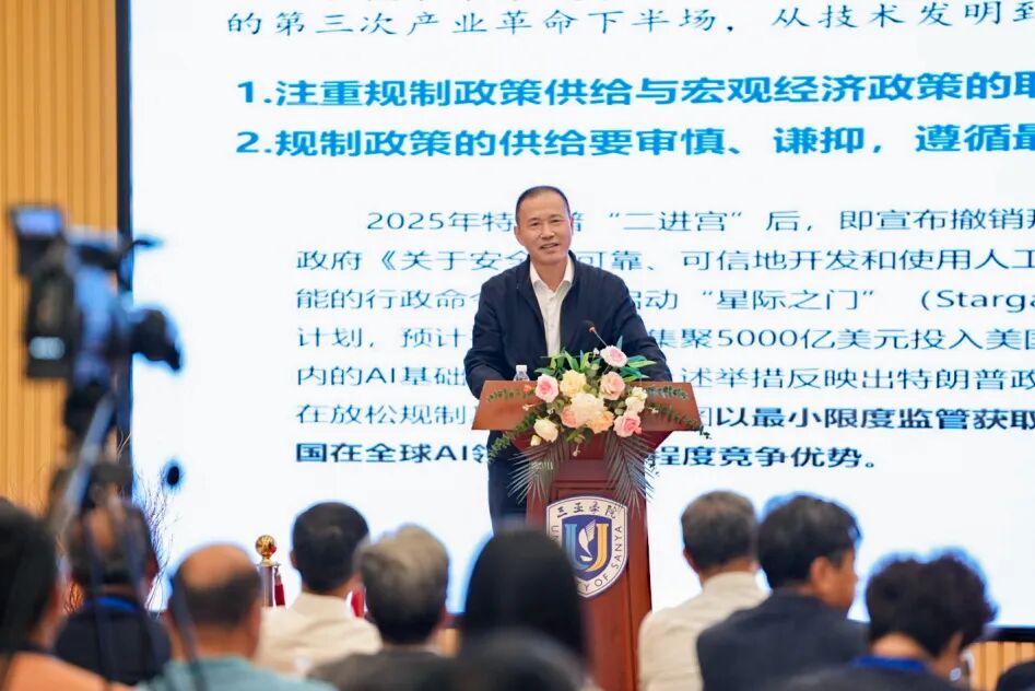 三亞學(xué)院副校長(zhǎng)朱沁夫教授在開幕式上致辭。他表示,海南自貿(mào)港正加快打造數(shù)字貿(mào)易、數(shù)字金融、數(shù)字文旅等開放型數(shù)字經(jīng)濟(jì)產(chǎn)業(yè)體系,數(shù)字經(jīng)濟(jì)已成為自貿(mào)港建設(shè)的核心引擎。三亞學(xué)院始終立足海南、服務(wù)國(guó)家,深度整合財(cái)經(jīng)、管理、金融等優(yōu)勢(shì)學(xué)科組建商學(xué)院,聚焦數(shù)字經(jīng)濟(jì)、金融科技等前沿領(lǐng)域,打造AI賦能、項(xiàng)目驅(qū)動(dòng)的生態(tài)結(jié)構(gòu),全力服務(wù)海南自貿(mào)港高質(zhì)量發(fā)展。期待依托此次高端學(xué)術(shù)交流平臺(tái),與全國(guó)專家攜手并肩,共同推動(dòng)數(shù)字經(jīng)濟(jì)產(chǎn)學(xué)研用深度融合,為海南自貿(mào)港發(fā)展注入新動(dòng)能、增添新活力。