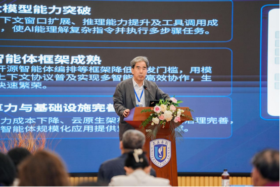 中國(guó)西部研究與發(fā)展促進(jìn)會(huì)數(shù)字經(jīng)濟(jì)專業(yè)委員會(huì)主任孫啟明教授結(jié)合AI發(fā)展熱點(diǎn),分享了數(shù)字經(jīng)濟(jì)時(shí)代的思考與展望。他表示,數(shù)字經(jīng)濟(jì)不僅是生產(chǎn)方式的深刻變革,更是一種全新的社會(huì)形態(tài),高校與學(xué)界應(yīng)主動(dòng)擁抱技術(shù)變革,引導(dǎo)青年學(xué)子正確運(yùn)用數(shù)字技術(shù)、堅(jiān)守學(xué)術(shù)初心,為數(shù)字經(jīng)濟(jì)健康有序發(fā)展保駕護(hù)航。