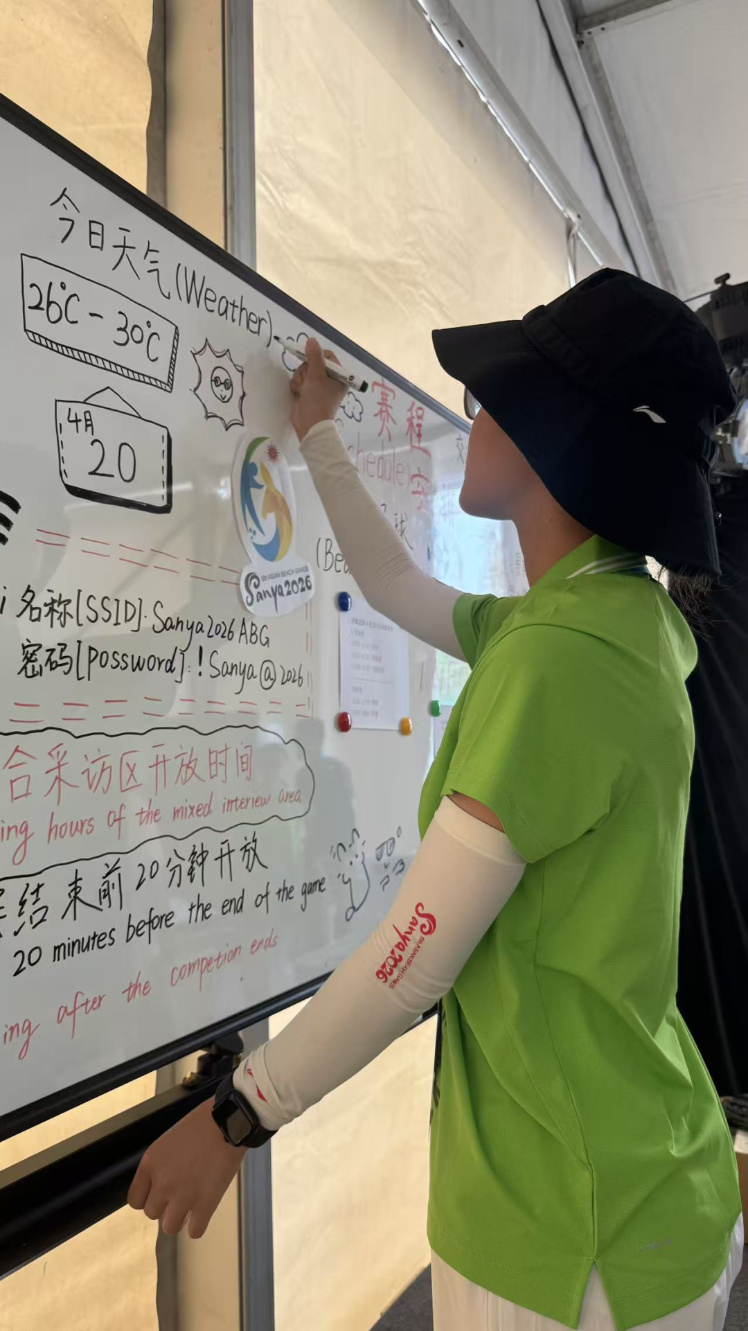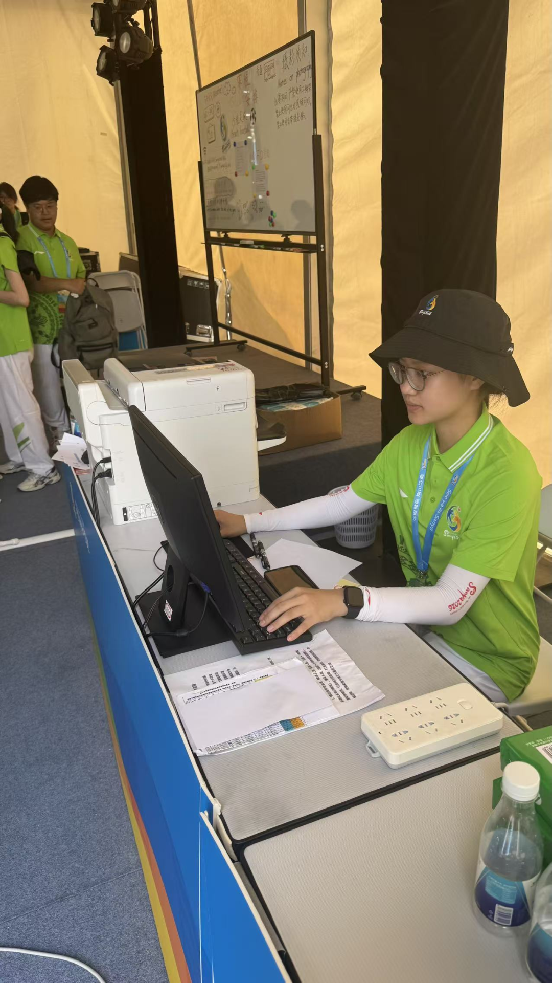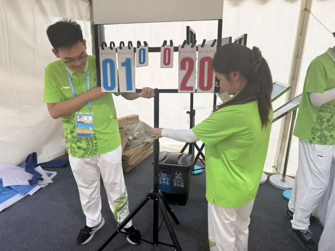 我的工作聚焦賽前預(yù)備:布置場館、調(diào)試設(shè)備、制作白板賽程表??此瓶菰?,卻容不得半點(diǎn)馬虎。