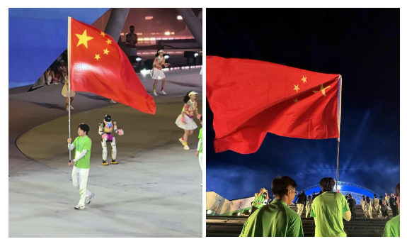 我很開心成為開幕式彩排中國隊(duì)的扛旗手。高舉五星紅旗、聽到全場歡呼的那一刻,我無比自豪。這場盛會(huì)讓我感受到祖國的強(qiáng)盛,也給予我青春力量。我將銘記榮光,勇?lián)姑?,為學(xué)校爭光、為祖國添彩。