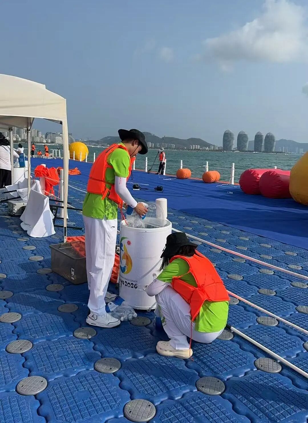 身穿“亞沙綠”的志愿者和工作人員